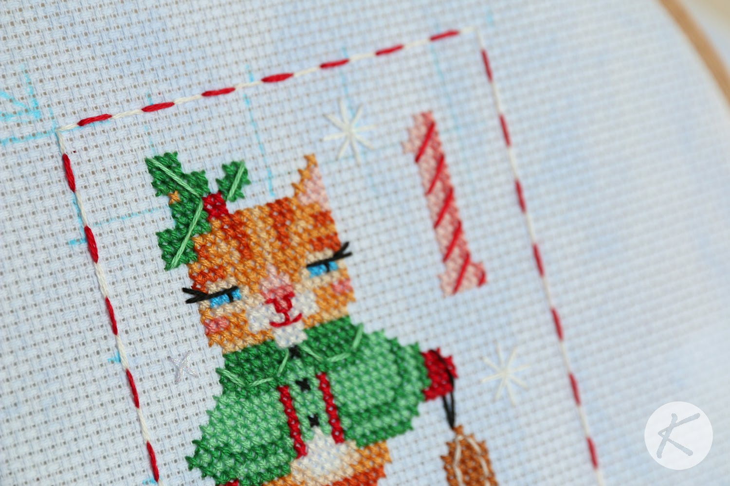 Witajcie w ten piękny, zimowy dzień! Zaplanowałam sobie, że dziś zacznę kolejnego zwierzaka w moim adwentowym kalendarzu i przekładając tamborek uzmysłowiłam sobie, że przecież nie pokazałam jeszcze na blogu Katie Kitty! A skończyłam ją zgodnie z planem, czyli we wrześniu! Cóż stało się i już… teraz trzeba tylko szybciutko nadrobić zaległości i nie dopuścić do takiej sytuacji w przyszłości. A teraz zerknijmy jeszcze raz na zbliżenie hafciku.