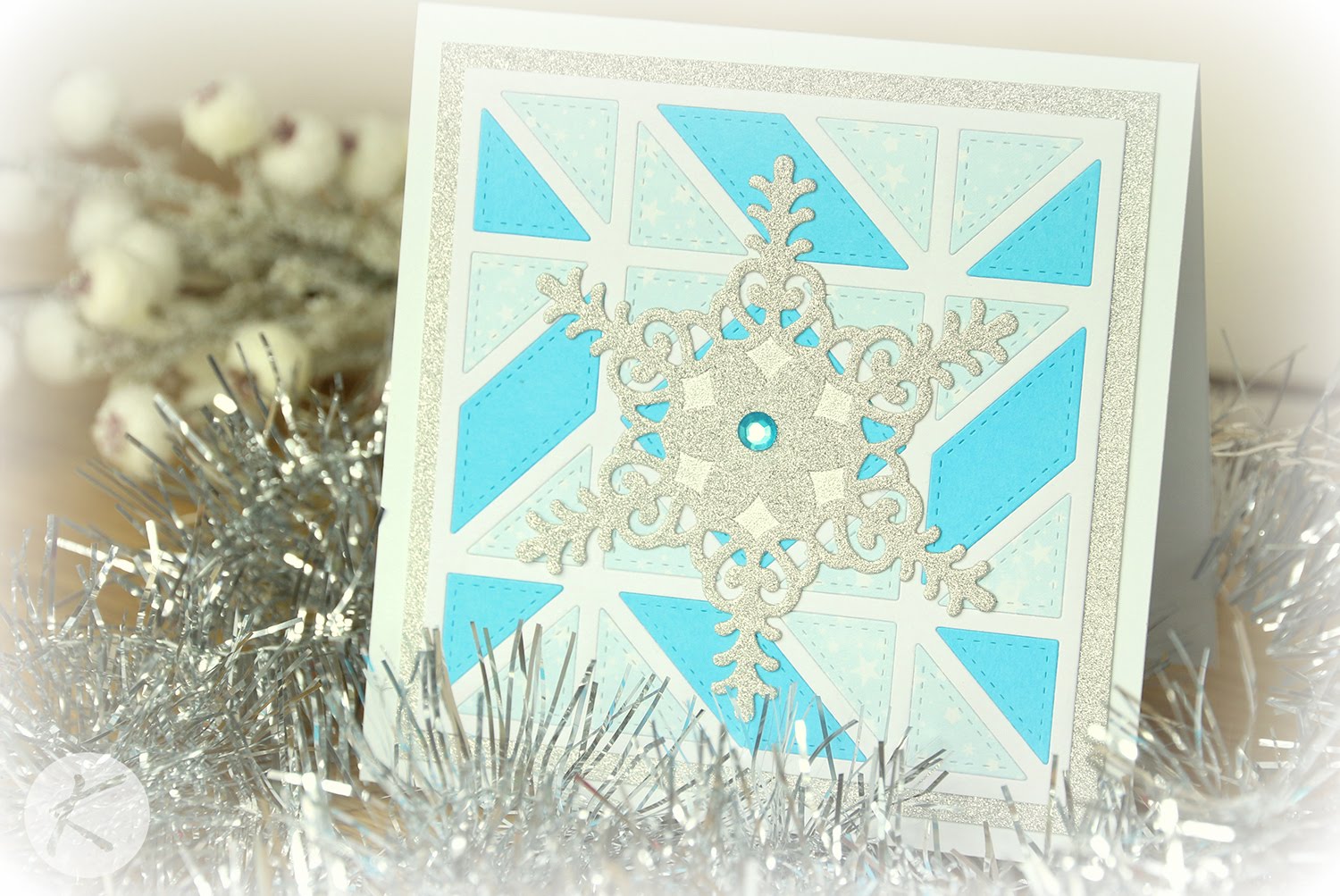 Tym razem postanowiłam zrobić coś zupełnie innego, niż zazwyczaj i wybrałam patchworkowy wykrojnik, który w takich resztkowych projektach sprawdza się idealnie. A żeby było bardzo świątecznie i zimowo wybrałam srebrny, brokatowy papier, o którym opowiadałam Wam w moim mega wielkim szaleństwie zakupowym (klik).
