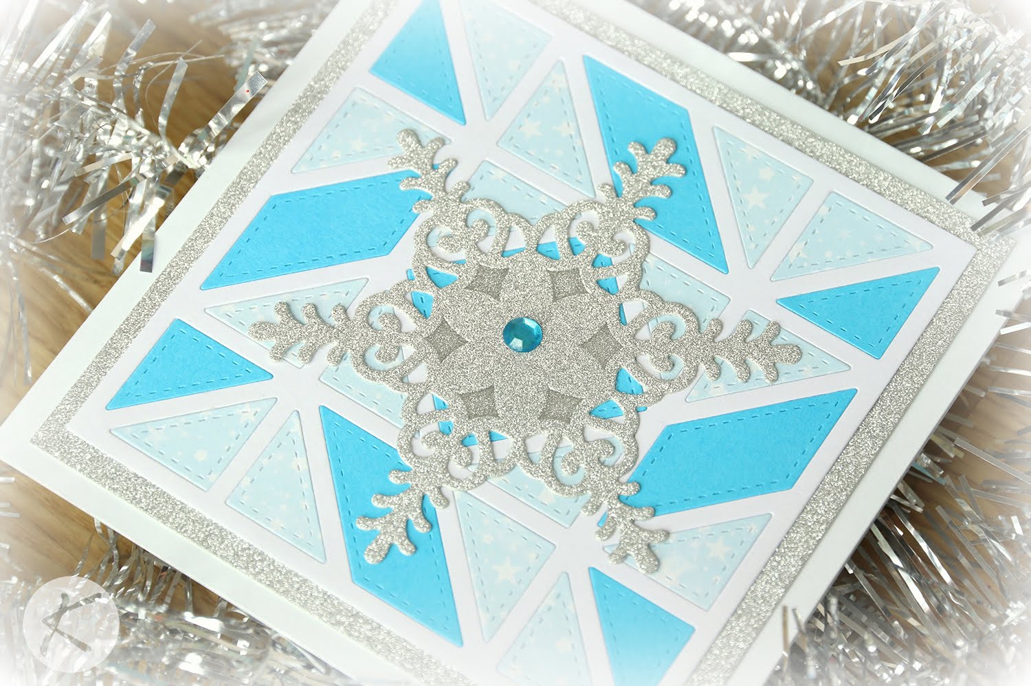 Bardzo ciekawa "geometryczna" karteczka z pięknie błyszczącą się śnieżynką 🙂 Dziękuję za udział w wyzwaniu na blogu Sklepiku Gosiu – DT Danfi